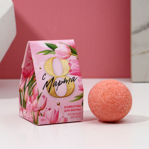 • Цена за 2 шт. Бомбочка для ванны С 8 марта!, 40 г, ягодный десерт
