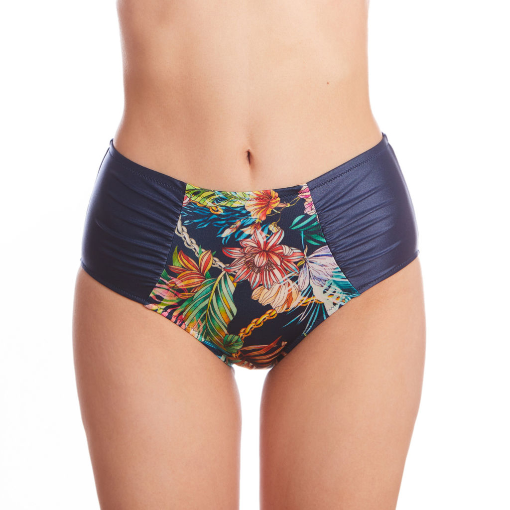 Искушение, наслаждение и расслабление стали базовыми мотивами при создании серии Тропический рай. Перед взором моментально вырисовывается идеальная экзотическая картинка с белоснежными пляжами, кристально прозрачной водой, голубыми горизонтами, высокими пальмами и изобилием ярких цветов и фруктов. Тропический рай это еще и про огромное количество зелени и солнца, плавно раскачивающиеся между деревьями гамаки и свежие кокосы. Это всегда те места, откуда не хочется возвращаться. Куда уносятся мысли даже в те моменты, когда там не находишься. Одним словом просто рай. Чтобы ваш отдых был насыщен и впечатлениями, и красками, наши дизайнеры перенесли тропические мотивы в дизайн купальников, идеально скомбинировав их с полотном в классическом однотоне. Смотрится максимально выигрышно и дорого за счет украшений в виде цепей, которые придают изделиям нотку не вычурной роскоши.