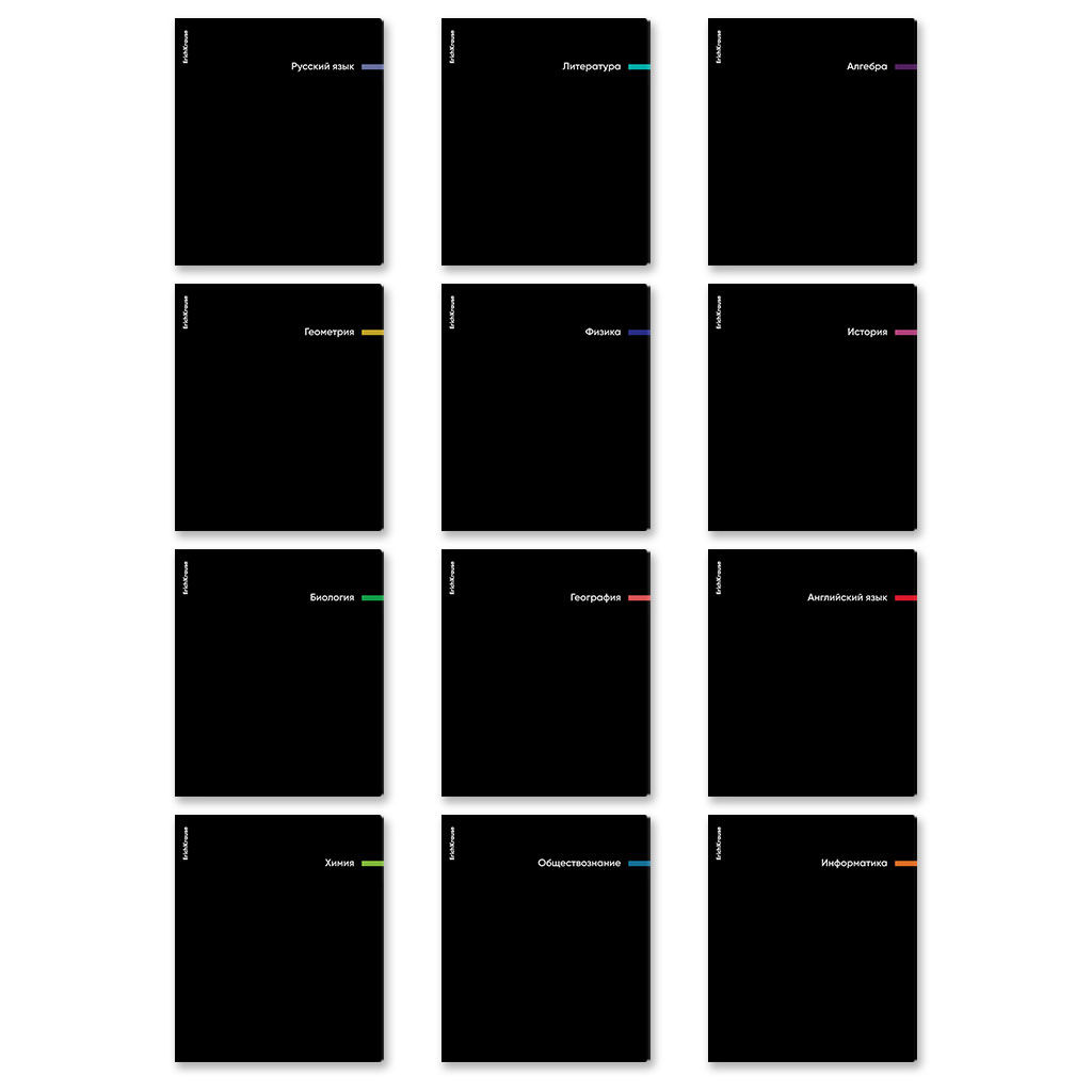Комплект тетрадей по 12 основным учебным предметам: русский язык, литература, алгебра, геометрия, физика, химия, биология, география, история, обществознание, английский язык, информатика. Удобный вариант для приобретения на целый учебный год или в подарок. Каждая тетрадь объемом 48 листов имеет инфо-блок с кратким изложением школьной программы. Упаковка - плотный прозрачный пакет.