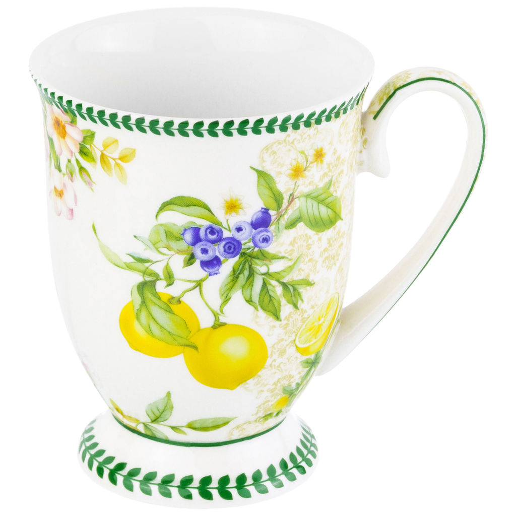Кружка 300 мл 11*8*11 см "Лимоны" на ножке, фарфор NEW BONE CHINA
