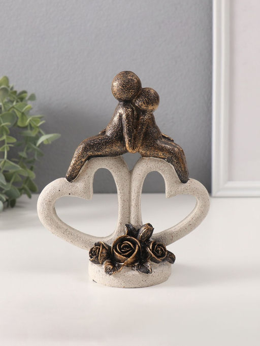 Фигурка полистоун Пара на каменных сердцах с розами, под бронзу, 7.5?15.3?18 см