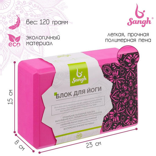 • Блок для йоги Sangh, 23×15×8 см, розовый
