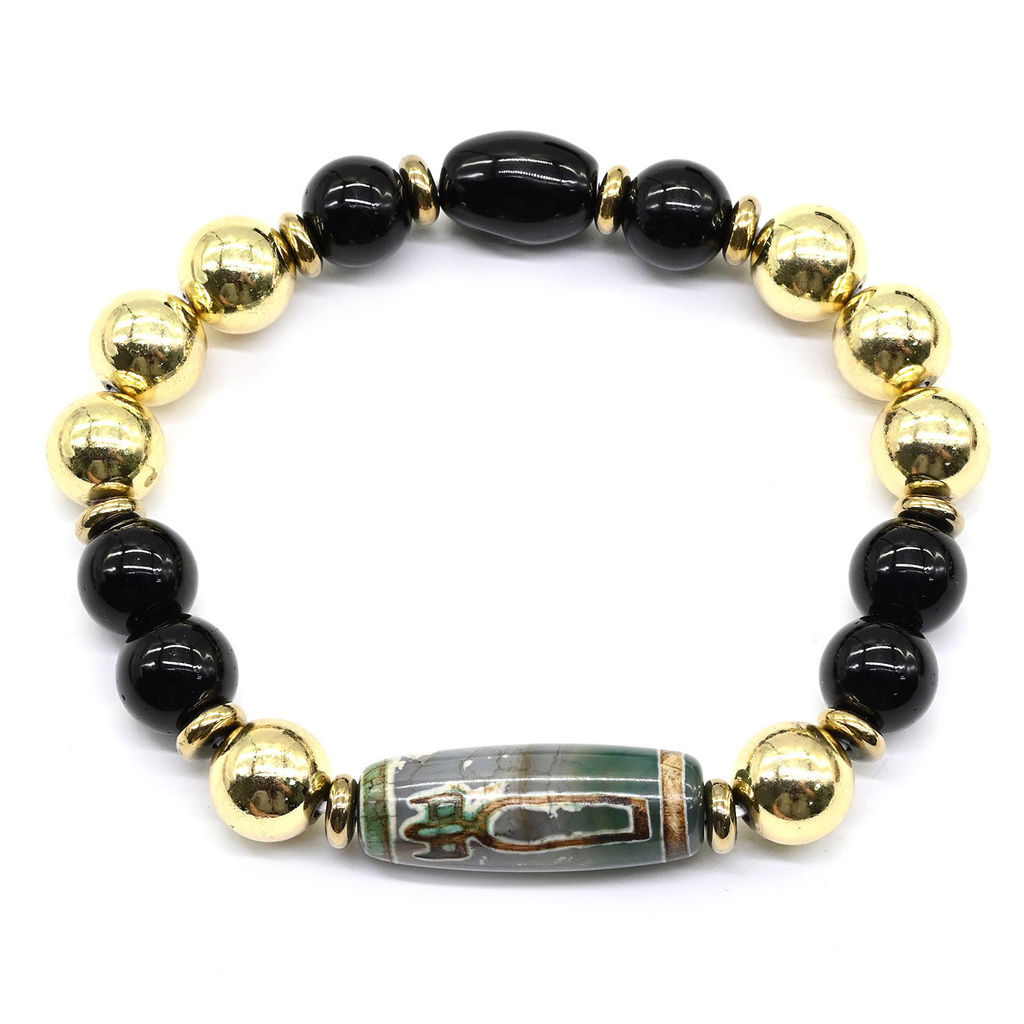 • Браслет с бусиной Дзи Кубера, гематитом и агатом шарик 10мм Радуга камня