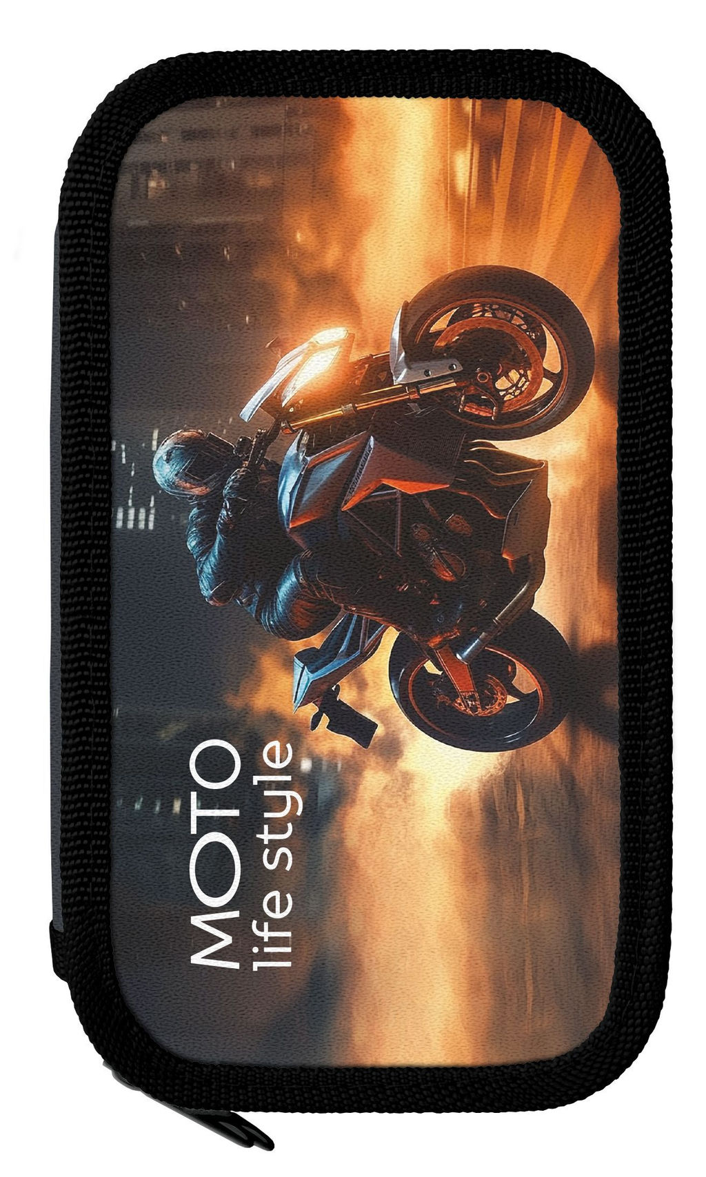 Пенал двухсекционный Schoolformat МОТО НОЧЬ 190х105 мм разноцветный, картон