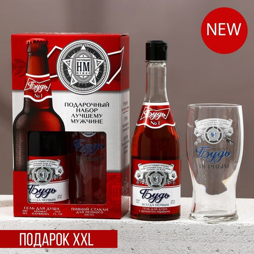 • Подарочный набор «Будь!», гель для душа пиво 500 мл и стакан для пива 500 мл, Чистое счастье