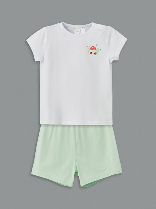 Bisiklet Yaka Bask?l? K?z Bebek Ti??rt ve ?ort 2li