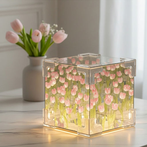 • Набор для творчества-светильник "Куб" розовые тюльпаны, в пакете
