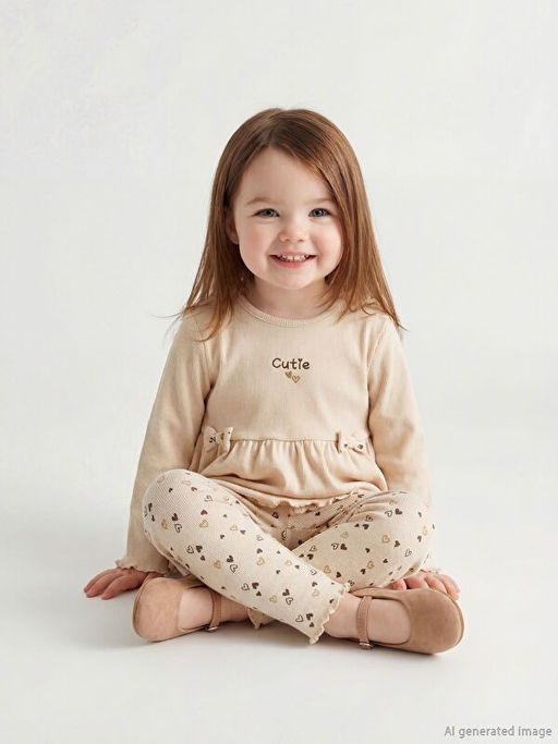 Bask?l? F?rf?r Detayl? K?z Bebek Bluz ve Tayt