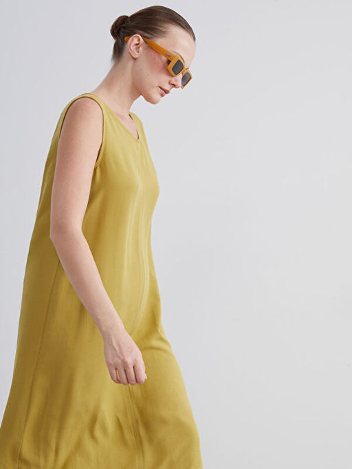 • Bisiklet Yaka A Kesim Keten Kar???ml? Elbise