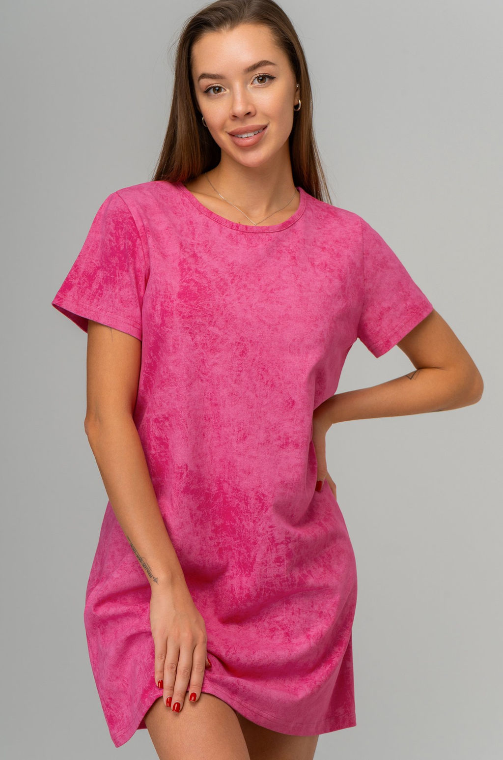 Повседневное домашнее платье выполнено из нежного, приятного к телу 100% хлопка. Трикотажная ткань кулирная гладь хорошо пропускает воздух. Хлопковый трикотаж мягкий и приятный к телу. Короткая туника с винтажным вареным эффектом идеальна для образов на лето.