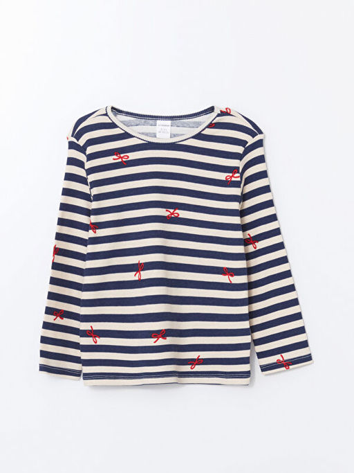 Bisiklet Yaka ?izgili K?z ?ocuk Ti??rt