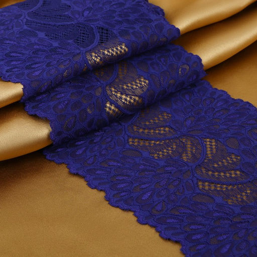 Кружевная эластичная ткань «Павлиний хвост», 180 мм, 2.7±0.5 м, тёмно-синяя