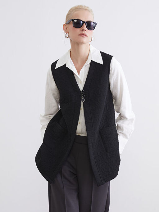 • V Yaka Kendinden Desenli Kad?n Yelek