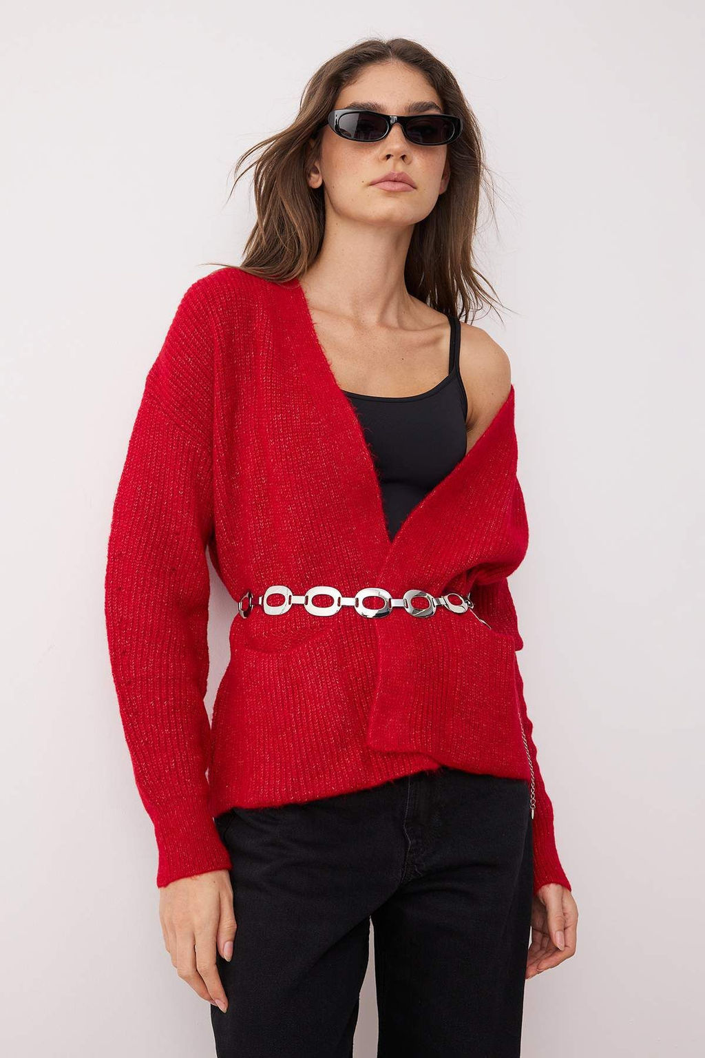K?rm?z? Genis Kal?p Yumusak Dokulu Cep Detayl? Triko H?rka TWOAW24HI00133