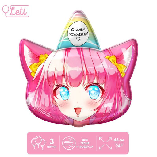 • Цена за 3 шт. Воздушный шар фольгированный 24" «Девочка аниме»