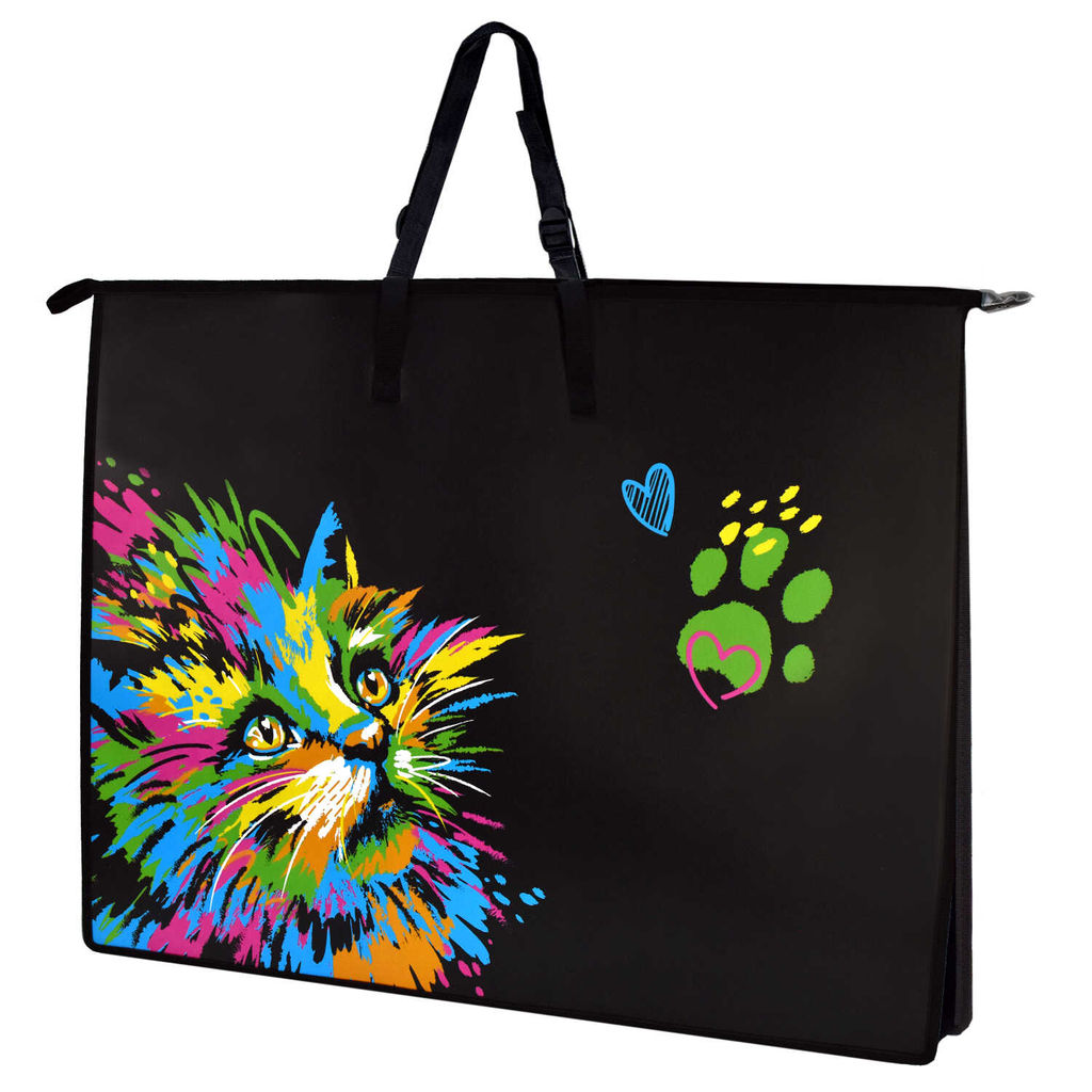 Папка для чертежей и рисунков пластиковая арт. 62515/ 6 НЕОНОВЫЙ КОТ (полипропилен, формат А2, 65х47х11 см, 1 отделение (-я), молния, ручки, регулируемые по длине, внутренний ПВХ карман А4 формата, ширина боковин и дна 11см, УФ-печать)