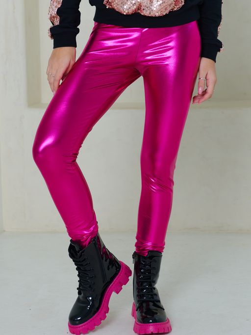 Лосины средней посадки, прилегающего силуэта из ткани диско. Пояс с эластичой тесьмой. Состав:100% полиэстер