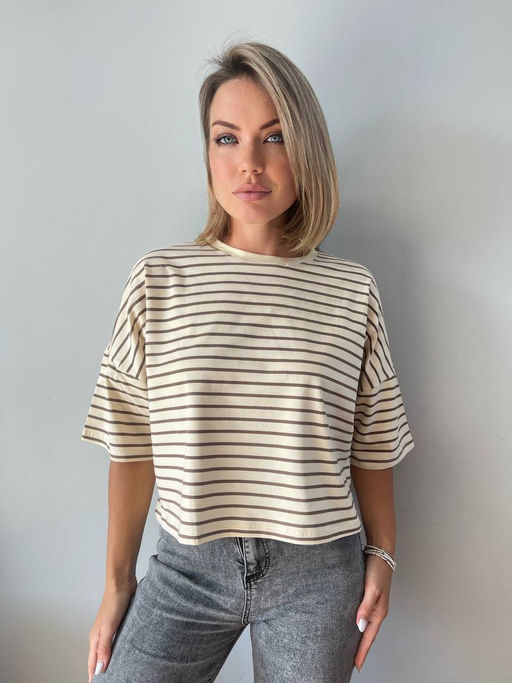 K11879 Футболка OVER SIZE (плотный хлопок) БЕЖЕВЫЙ