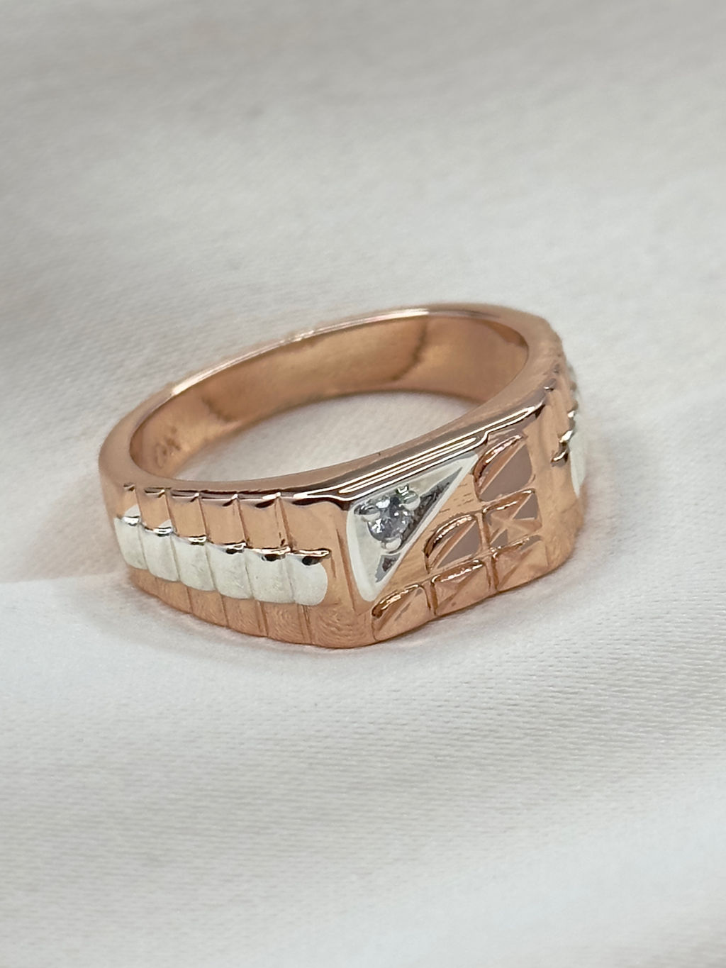 Строгая геометрия кольца станет отличным дополнением к образу уверенного в себе мужчины. Сочетание золотого и платинового цветов с лаконичной вставкой из прозрачного циркона, делают это украшение оригинальным и самодостаточным. Такое кольцо также послужит прекрасным подарком.