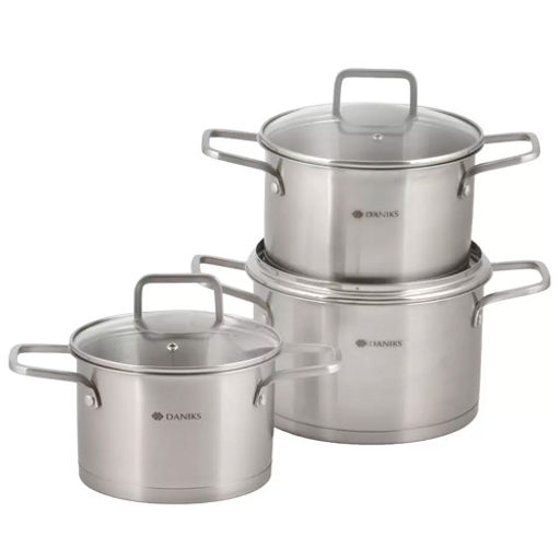 • Набор посуды нерж, 6 пр, кастрюли 1.9,2.9,3.9 л, индукц, Daniks, Ирати, SD-01369-6 (505746)