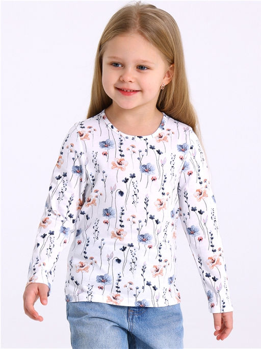 лонгслив,хлопок 100%,кулир / хлопок 100%,- / нежные цветы на белом / - / - / - / -