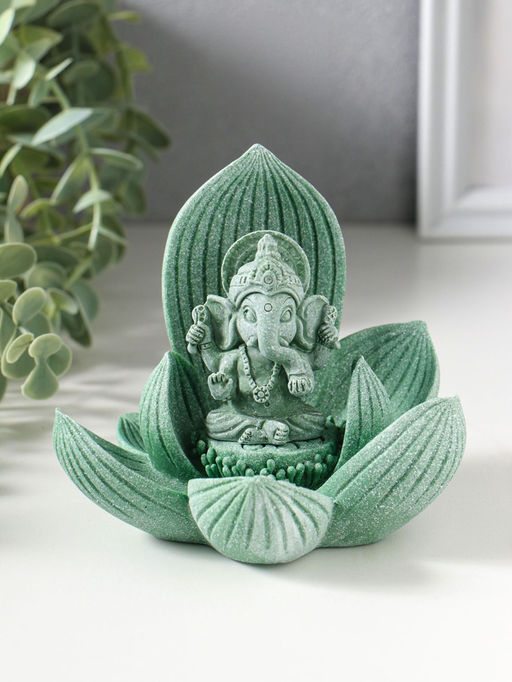 Фигурка полистоун «Лотос и Ганеша», зелёный, 12.5×12.5×11 см