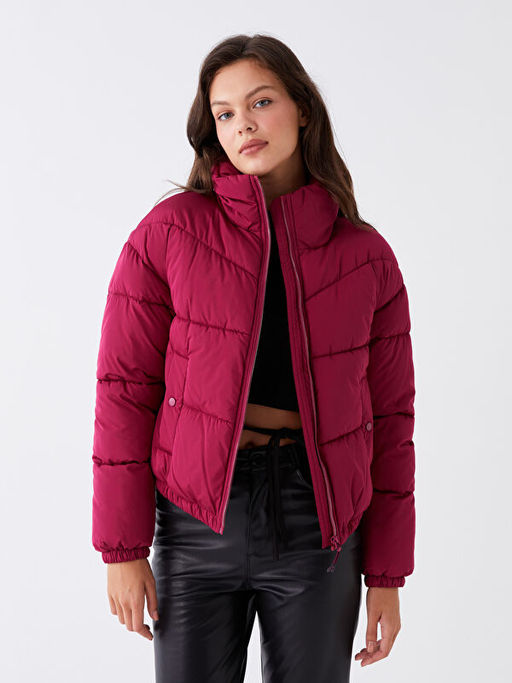 • Dik Yaka D?z Uzun Kollu Crop Kad?n ?i?me Mont