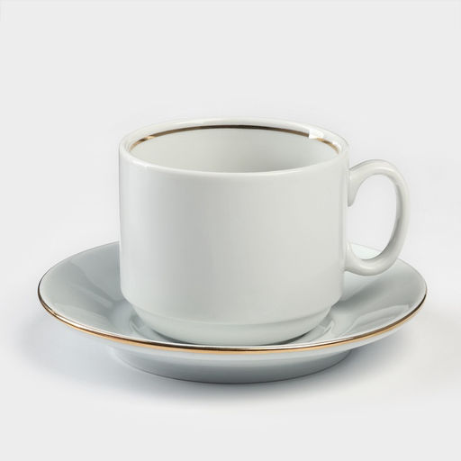 Выпускаемая продукция ЗАО «Добрушский фарфоровый завод» является высококачественной, экологически чистой, соответствует требованиям международных и европейских норм.Изделия из фарфора бывают настолько тонки, что через них просматривается солнечный свет. Несмотря на всю утончённость, вся фарфоровая посуда наделена особой прочностью.Преимущества:экологически чистая посуда изготавливается из особых сортов редкой белой глины, которая также используется в косметологии;прочность;изящный внешний вид;фарфор дольше удерживает теплоту ваших напитков и блюд, что позволит раскрыть аромат и вкус продукта.Эксплуатация:бережное обращение;избегайте резкой смены температуры, чтобы поверхность не потрескалась;красивая фарфоровая посуда чувствительна к абразивным порошкам и грубым щеткам, используйте мягкие гелевые средства и поролоновые губки.Комплектация:чашка - 220 мл, d=8 см, h=7 см;блюдце - d=13,7 см. Набор: Да. Количество персон: 1. В наборе, шт.: 2. Объём, мл: 220. Тематика: Однотонная. Рисунок: Да. Наличие подставки: Нет. Вид тарелки: Глубокая. Можно мыть в посудомоечной машине: Нет. Можно использовать в СВЧ-печи: Нет. Текстура: Гладкая. Особенности: С золотой отводкой. Матовая поверхность: Нет. Для горячего: Да. Бесплатная доставка: Да. Размеры товара: 10.5/7.5/14.5. Примечание: Объём измеряется от дна до верхнего края изделия и может отличаться до 10% от заявленной величины в связи с особенностями производства.. Примечание: В зависимости от содержания каолина (белой глины) поверхность посуды может иметь сероватый оттенок.. Примечание: Размер товара может отличаться от заявленного на ± 1 см.. Примечание: Для изделий, изготавливаемых в производстве, допускаются предельные отклонения от номинальных по: диаметру, длине, высоте ± 3%, ёмкости ± 10%, весу ± 10%..