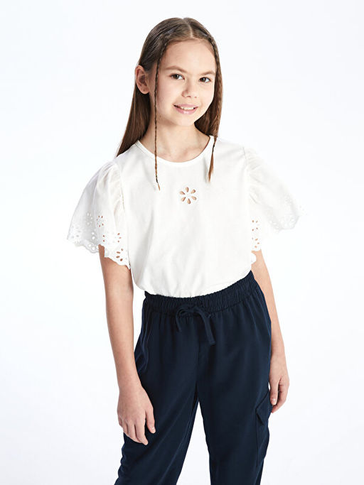 Bisiklet Yaka Fisto Detayl? K?sa Kollu K?z ?ocuk Ti??rt