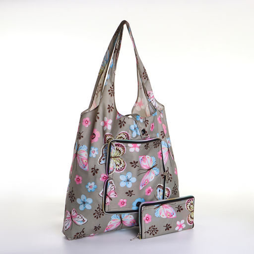 • Сумка хозяйственная «Бабочки» на кнопке, складная, серая