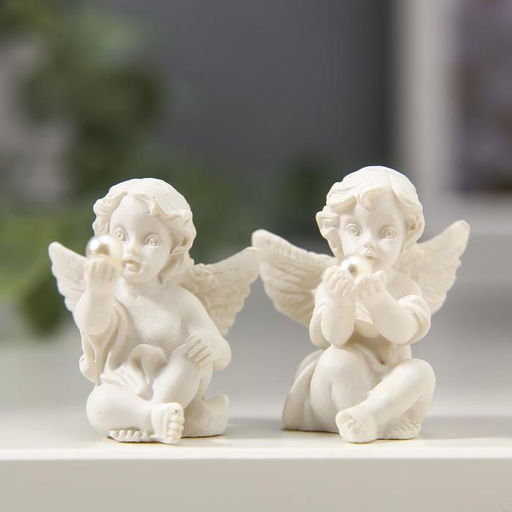 • Цена за 2 шт. Фигурка полистоун Ангелочек рассматривает жемчужину, 3.5?2.5?2.8 см, МИКС