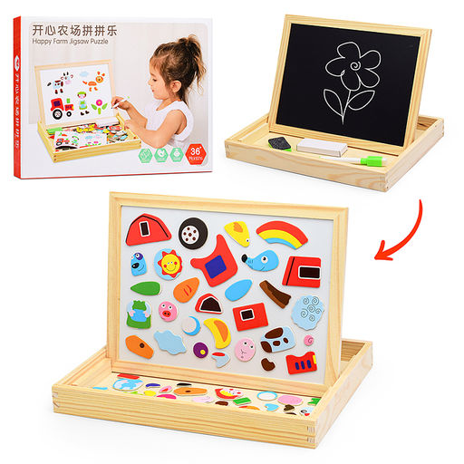 - две рабочие поверхности: одна - магнитная и рисования маркером на водной основе; вторая - для рисования мелками. ( 28х21 см.)