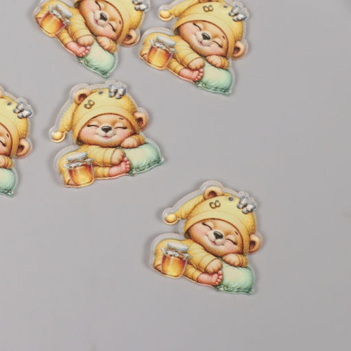 Цена за 5 шт. Декор для творчества акрил «Медвежонок в пижамке с баночкой мёда сладко спит», 3×3×0.2 см