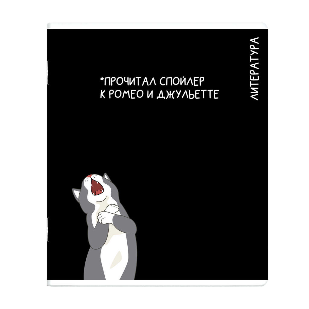 Тетрадь предметная арт. 69832/ 16 КОТЫ МЕМЫ ЛИТЕРАТУРА /48 л., А5+, вн.блок - линия, белый офсет, мягкий переплёт (2 скобы), облож.- мелованный картон 190 г/м?, выборочный ТВИН УФ-лак, Подкладные листы со справочной информацией/