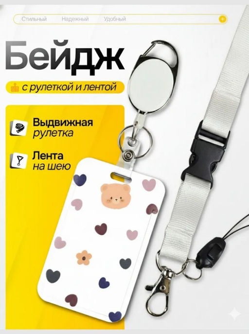 Бейдж для пропуска с рулеткой и лентой на шею, изготовленный из прочного пластика, силикона и нейлона, отличается долговечностью и надежностью.