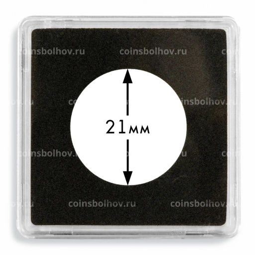 Внешние габариты капсулы: 50х50х6,25 мм. Из устойчивого к царапинам пластика. Легко открывающийся надежный замок. Внутри капсулы вставка из черного пенопласта для хранения монет, изготовленная из мягкой пены марки EVA, не содержащей смягчителей и кислот (нейтральный pH).
