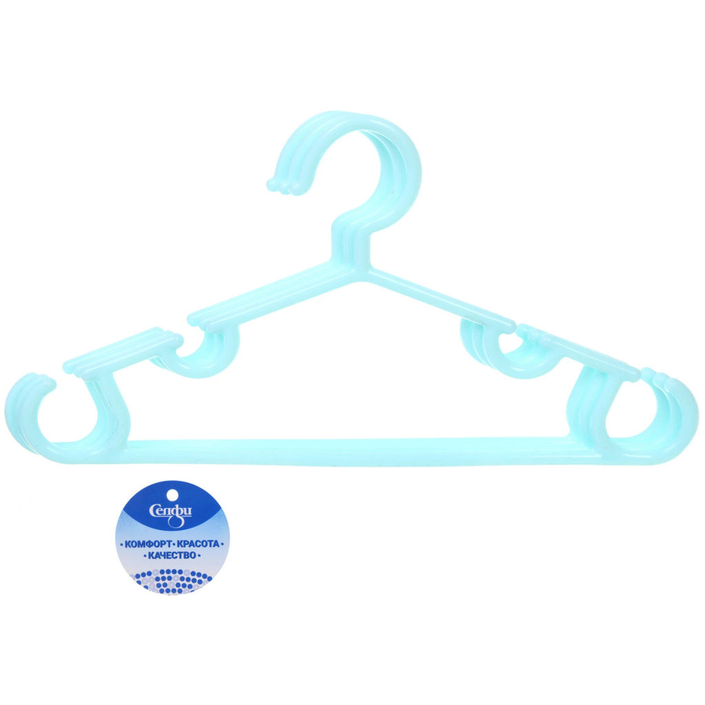 • Цена за 6 шт. Плечики для одежды детские 3шт "ИДЕЯДОМА", классика, цвет голубой, 28*15см (Лейбл Селфи)