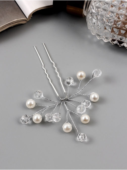 Цена за 6 шт. Шпилька для волос «Эмилия», шарики ассорти, 9×7 см, белая, прозрачная