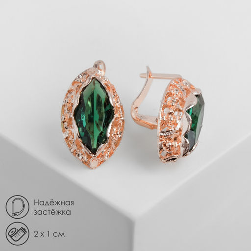 • Серьги со стразами «Эдель» эллипс ажурный, цвет изумрудный в розовом золоте