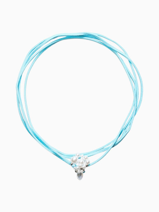 Чокер на нити с кулоном "Жемчуг с кристаллом" L=150см, цвет бело-голубой в серебре