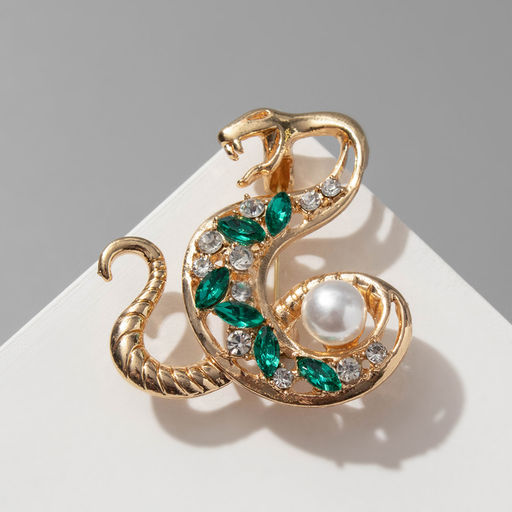 • Брошь «Змея», с жемчужиной, бело-зелёная в золоте