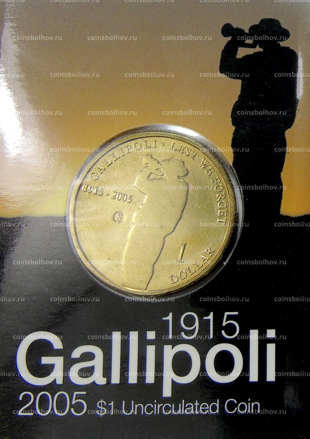 Монета 1 доллар 2005 года В Австралия 90 лет Дарданельской операции(Галлиполи) (в блистере)