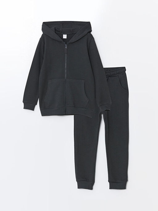 Kap??onlu Bask?l? Erkek Bebek H?rka ve Pantolon 2li Tak?m