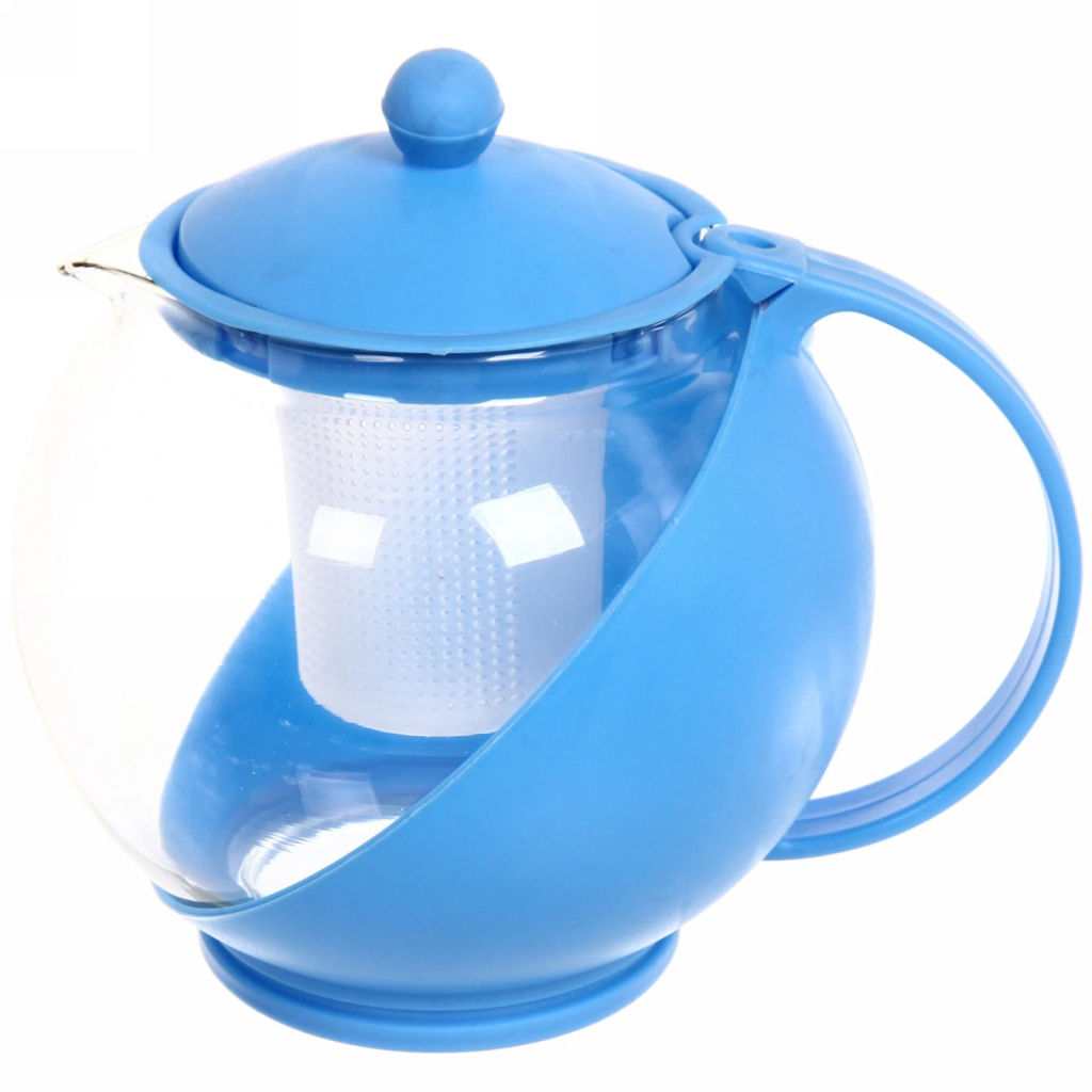 Чайник заварочный стеклянный 1250 мл Комби с пластиковым ситом, микс цветов