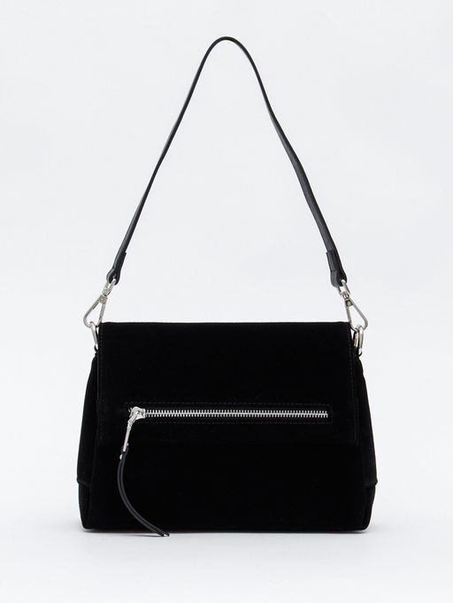 Сумка кросс-боди, выполнена из замши.  Дополнена серебристой фурнитурой. Данная модель закрывается на клапан. Каркас мягкий. Носится в руке за съёмную ручку или на плече. В комплекте имеется съемный ремень с регулировкой длины.