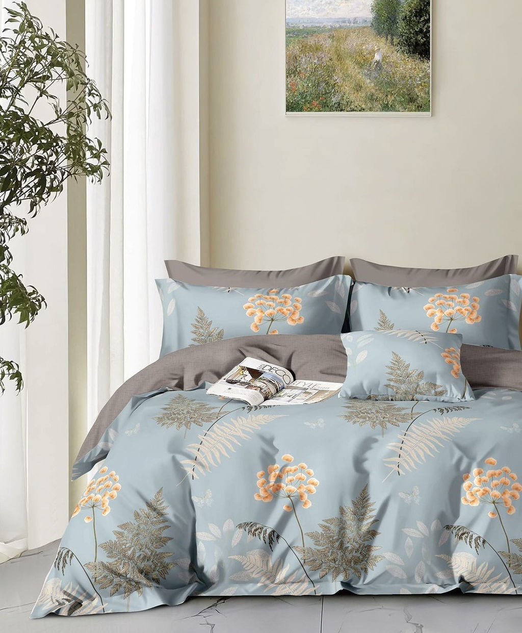 * Уважаемые покупатели, обратите внимание, что цвет комплекта, на изображении в нашем каталоге, может несколько отличаться от цвета самого товара, но, зачастую, это отличие незначительно. Так же просим обратить внимание, что рисунок (расцветка) наволочек и пододеяльника так же может отличаться от изображения комплекта в каталоге, т.е. пододеяльник может быть выполнен, как только из основного вида ткани, так и из основной ткани в паре с компаньоном. Соответственно, наволочки отшиваются либо из основной ткани, либо из ткани - компаньона. Отсутствуют все отделочные элементы: вышивка, тесьма, ушки на наволочках и пододеяльнике.­