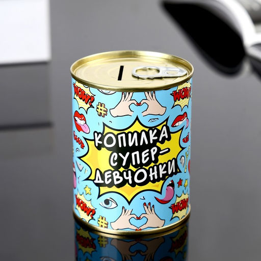 • Копилка для денег «Банка. Копилка супер-девчонки», металл, 7.3×9.5 см