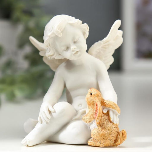 • Сувенир полистоун "Белоснежный ангел с цветным кроликом" 6,8х6,5х6 см