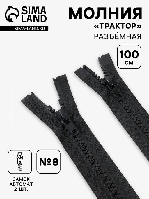 Цена за 10 шт. Молния «Трактор», №8, разъёмная, 2 замка, замки автомат, 100 см, чёрная