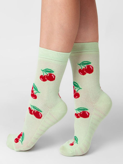 Яркие сетчатые носки средней длины, с мягкой резинкой.